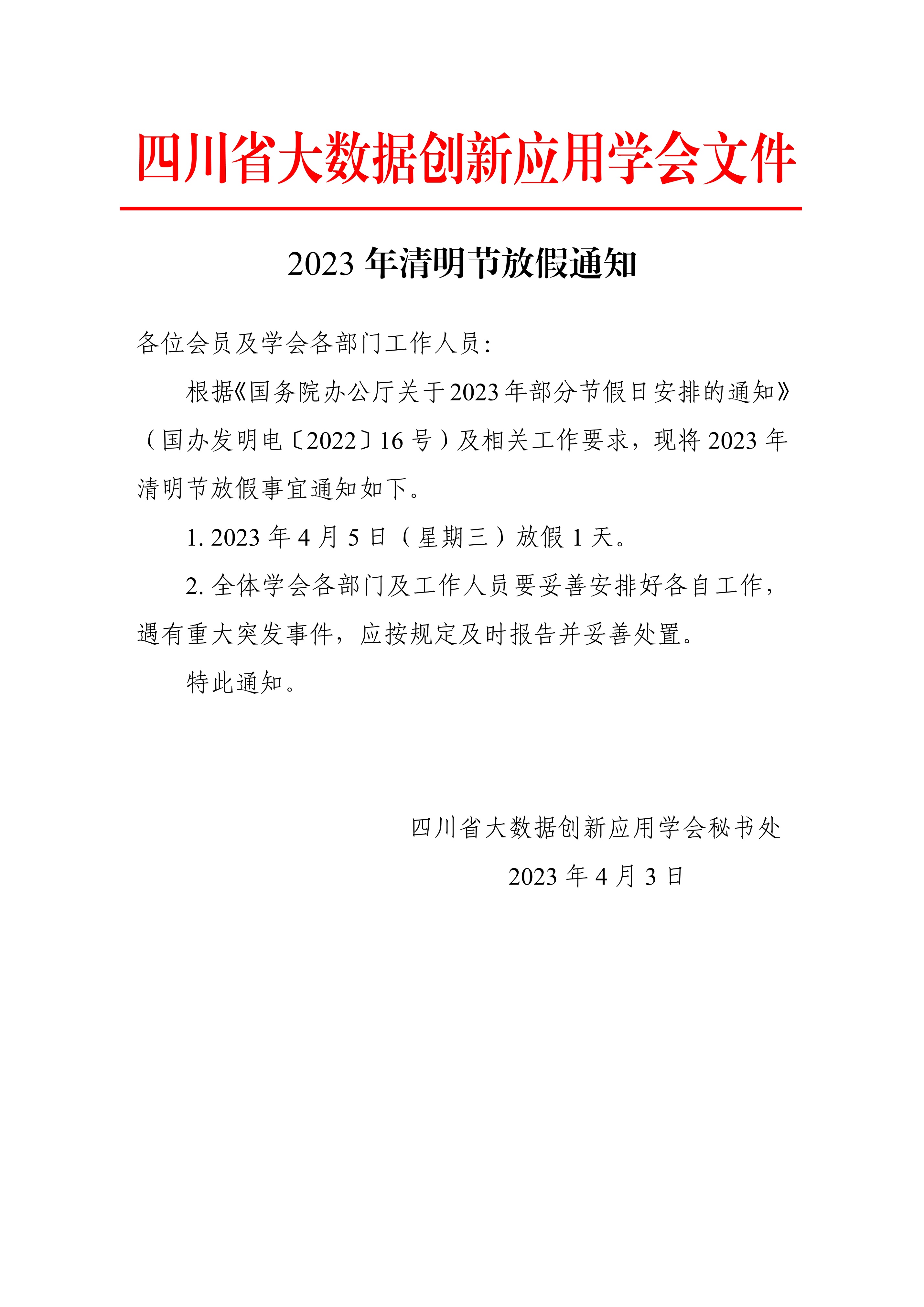 2023年清明节放假通知